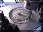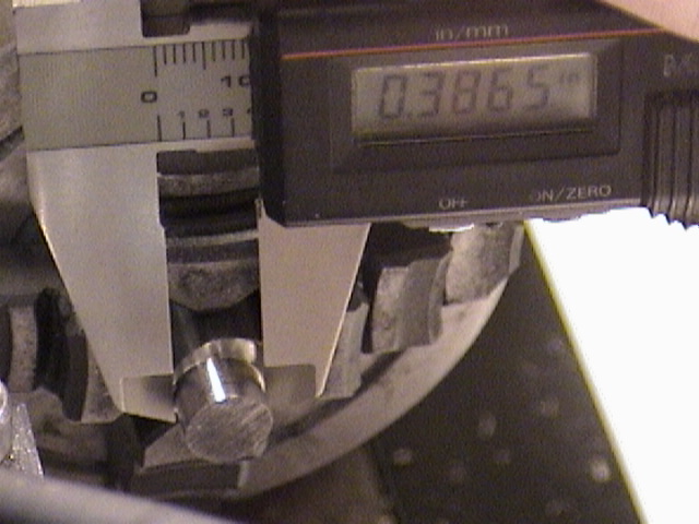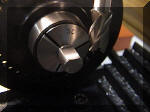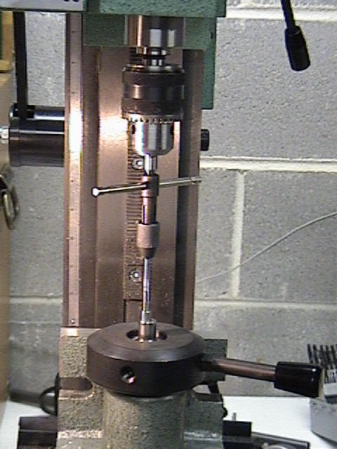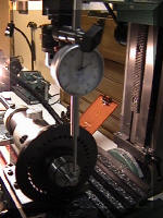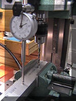 the drill in the hole, just ready to drill, the indicator is zeroed.