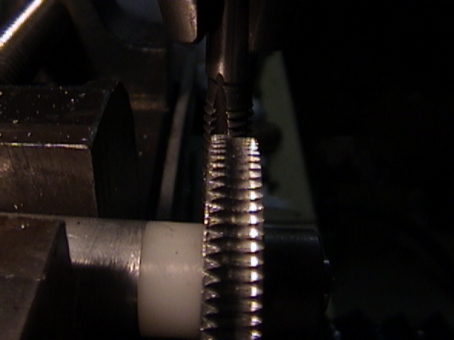 you thread a rod, then grind flutes in it for cutting teeth, then harden and